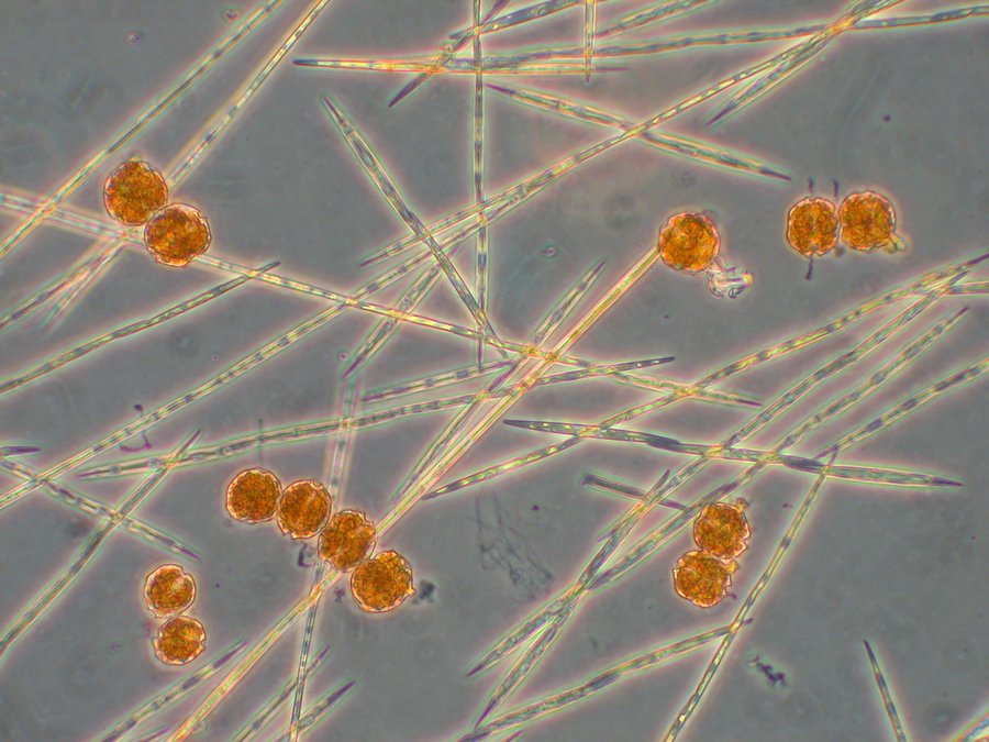 Image shows the harmful algal cells that produce potent neurotoxins described in our study: Pseudo- nitzschia (cigar shaped diatoms that produce domoic acid) and Alexandrium (roundish shaped dinoflagellates that produce saxitoxin). Photo credit: Brian Bill NOAA Fisheries/Northwest Fisheries Science Center, Seattle, WA, 98112 USA