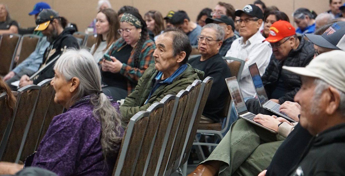 Banner Image Caption: Audience listens to testimony Feb. 9, 2026, at the North Pacific Fishery Management Council meeting in Anchorage. Subsistence fishers from the Yukon and Kuskokwim river basins were among those attenting the meeting and giving public testimony about bycatch of chum salmon in the Bering Sea pollock fishery. Also attending the meeting were people involved in the pollock industry. Public testimony on the issue to the full council stretched over four days. (Photo by Yereth Rosen/Alaska Beacon)