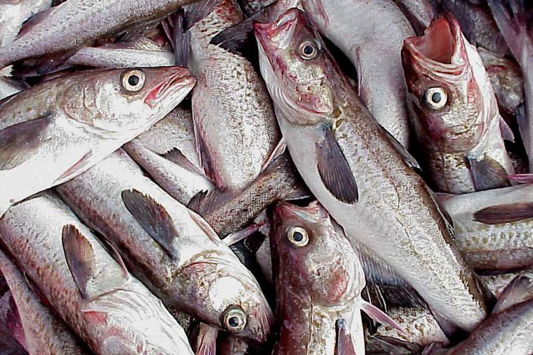 Alaska pollock, shown here from a harvest, make up the nation’s top-volume single-species commercial seafood catch. Alaska pollock, harvested mostly in the Bering Sea but also in the Gulf of Alaska, are processed into fish sticks, fish burgers, imitation crab meat and other common fish products. (Photo provided by the National Oceanic and Atmospheric Administration)
